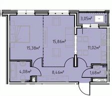 44 м2