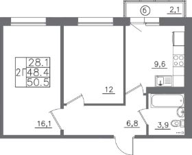 2-к квартира Показать на карте