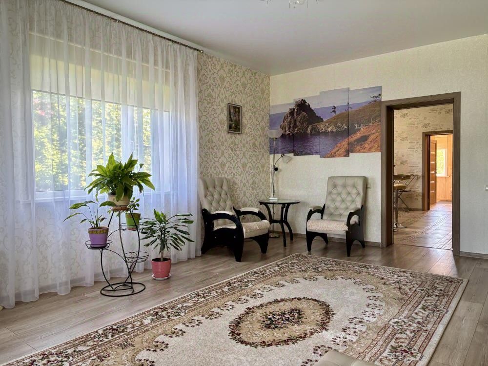 В продаже замечательный дом для проживания на природе, но в черте города. Дом, построенный по индивидуальному проекту с безупречной планировкой на две семьи. Это не просто жилье это возможность создать уютное гнездышко для большой семьи, разделить пространство с близкими или даже получать пассивный доход! Ключевые преимущества: 219,6 м жилой площади + 15 соток ухоженной земли свобода для сада, игр и отдыха! Современные материалы: брус 1818 с утеплением и стильной обшивкой металлосайдингом тепло, надежно, эстетично! Гараж на авто + просторные зоны для парковки. Баня согреет даже в самый лютый мороз Инфраструктура в шаговой доступности: школа, магазины, остановки жизнь за городом без компромиссов! Роскошь планировки: Первый этаж: Просторная гостиная с панорамным освещением. Уютная кухня-столовая для семейных ужинов. Современный санузел с качественно отделкой. Второй этаж: 2 светлые спальни с видом на природу. Вместительная гардеробная порядок и комфорт! Зеркальная планировка обеих половин дома гарантирует приватность и гармонию для двух семей. Инженерные решения под ключ: 2 скважины (15 м и 18 м) чистая вода без перебоев! Тёплые водяные полы + радиаторы на втором этаже идеальный микроклимат круглый год. Твердотоплевный котел это альтернативное отопление и безопасность вашей семьи на случай отключения света (но перебоев ни разу не было) 2 септика по 5 м автономная канализация. Электричество 40 кВт + два бойлера по 100 л энергоэффективность и комфорт! Почему этот дом? Тишина и свежий воздух убежище от городского шума. Готов к заселению просто приезжайте и наслаждайтесь жизнью! На территории участка располагается отдельно стоящий брусовой гостевой дом, общей площадью 43,2 кв м, обшит сайдингом, скважина , септик и печное отопление+ радиаторы. Рассмотрим все варианты, а так же варианты обмена на квартиры. Полную информацию и бесплатную консультацию можно получить у менеджера, связавшись с нами по телефону или придя в наш офис расположенный по адресу: г. Иркутск, ул. Омулевского, 20.