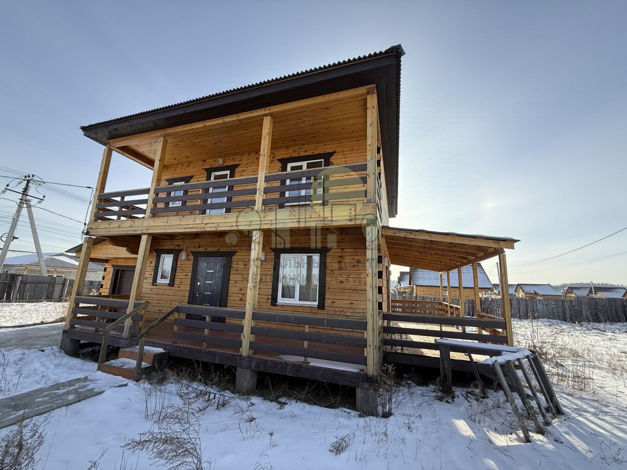 Продаем Двухэтажный дом 120 м с видом на Саянский хребет и озеро, 17 км от города Подходит СЕЛЬСКАЯ ипотека. От главной асфальтированной дороги дом находится на 2 линии, без горок проезд до дома. О доме: Дом расположен в 17 км от города по Байкальскому тракту, рядом с центральной дорогой посёлка. Панорамные окна обеспечивают вид на Саянский хребет и озеро. - Двухэтажный, общая площадь 120 м. - Первый этаж из газобетона, второй из дерева. - Высота потолков на первом этаже 4 м. - Планировка на втором этаже : 2 спальни, кухня-студия, гостиная, ванная комната. на первом этаже просторная комната с панорамными окнами, вы можете придумать все что угодно :зал для медитации,спорт зал, спальна,детская,игровая, зал для отдыха,бильярдная- в общем все что сможет позволить ваша фантазия.Материалы для ремонта 1 этажа закуплены и остаются будущему хозяину либо можем ремонт задуманный закончить-по вашему желанию. Внутренняя отделка включает обои на стенах, ламинат на полах. В ванной итальянский керамогранит премиум на полу, плитка с панно на стенах. Лестница из массива натурального дерева. О доме и районе: Участок 10 соток с деревьями, которые формируют живую изгородь и отгораживают участок с одной стороны с весны по осень. Дом ориентирован на солнечную сторону, что минимизирует расходы на отопление. - Отопление: водяные тёплые полы на обоих этажах, электрокотел. - Бойлер 100 л. - Септик (3 кольца) не требует откачки, стоки уходят естественным путём за счёт песка и скальника. - Откатные ворота с пультом управления. - Видеонаблюдение со стороны улицы. Инфраструктура: Подключены вода и электричество. Расход электричества минимальный благодаря солнечной ориентации. Расстояние до города 17 км, удобный подъезд по Байкальскому тракту. Условия продажи: Дом подходит для семьи. Документы готовы к оформлению.Один собственник.Вся сумма в договоре Подходит любая форма расчета.