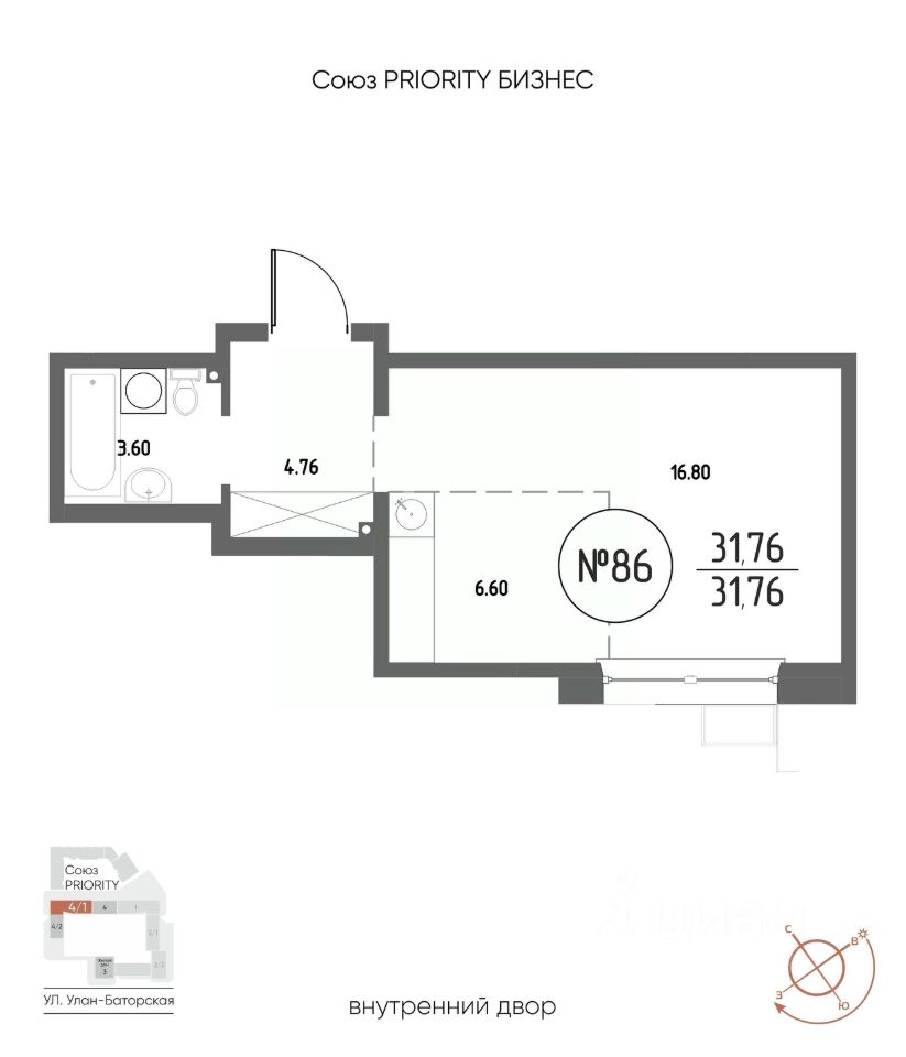 Продаётся 1-комнатная квартира в строящемся доме (Дом 4), срок сдачи: III-кв. 2029, общей площадью 31.76 кв.м., на 5 этаже. Мы начали с эталона - жилого комплекса Союз Priority, лучшего в России. А теперь представляем его логичное и яркое продолжение Союз Priority MAX. Наследие качества: Проверенные материалы, безопасные дворы, изысканные подъезды. Дух современности: Технологичные решения, демократичная атмосфера, энергия большого города. Ваше комьюнити: Это больше чем дом. Это точка притяжения для вашей семьи, друзей и тех, кто разделяет ваши ценности