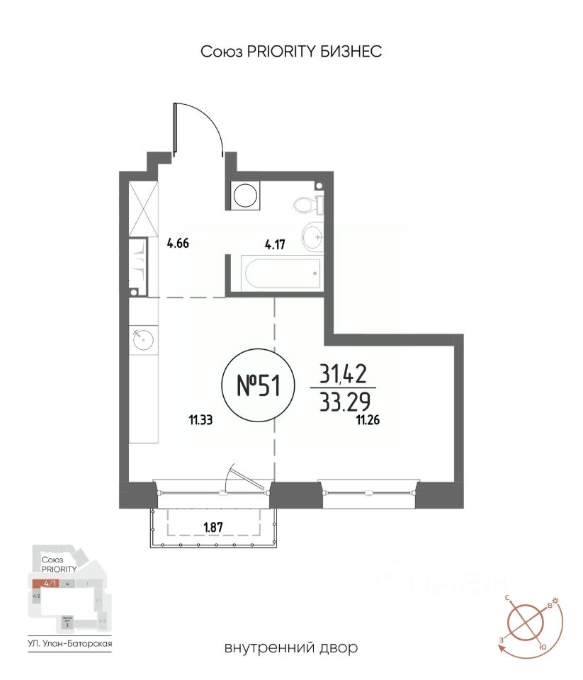 Продаётся 1-комнатная квартира в строящемся доме (Дом 4), срок сдачи: III-кв. 2029, общей площадью 33.02 кв.м., на 3 этаже. Мы начали с эталона - жилого комплекса Союз Priority, лучшего в России. А теперь представляем его логичное и яркое продолжение Союз Priority MAX. Наследие качества: Проверенные материалы, безопасные дворы, изысканные подъезды. Дух современности: Технологичные решения, демократичная атмосфера, энергия большого города. Ваше комьюнити: Это больше чем дом. Это точка притяжения для вашей семьи, друзей и тех, кто разделяет ваши ценности