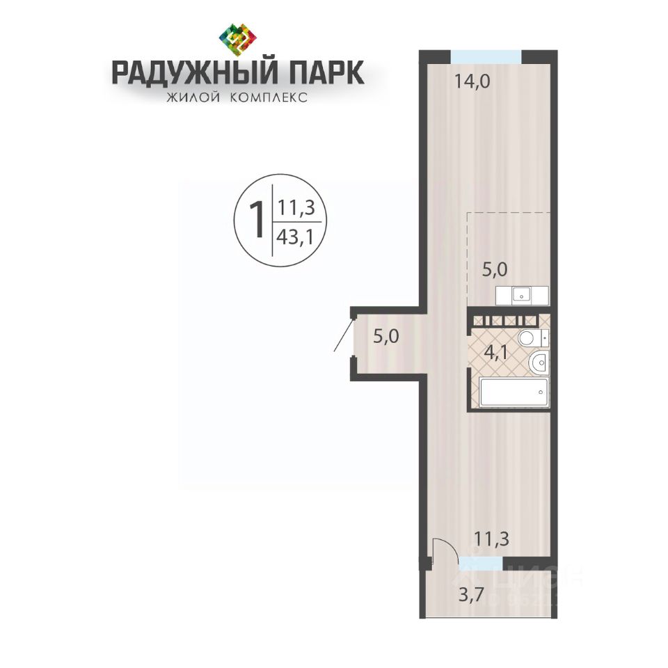 43 м² · Этаж 14 из 16