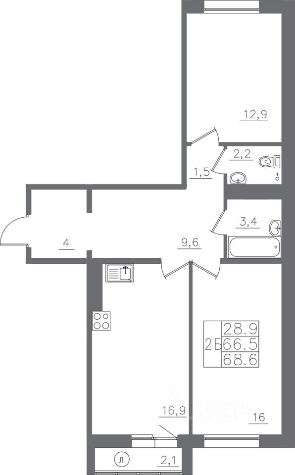 68 м² · Этаж 9 из 14