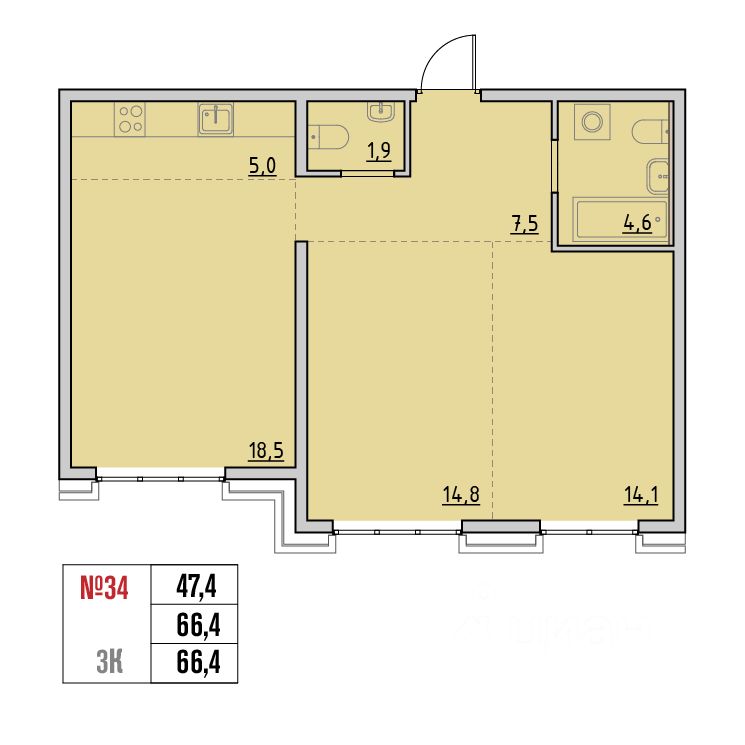 66 м² · Этаж 8 из 9