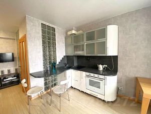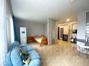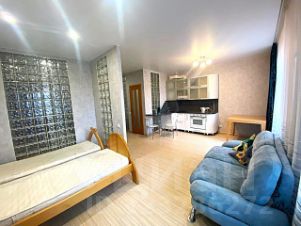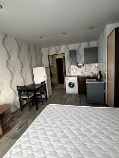 Просторная студия в новом доме! Отличный ремонт! Мебель и бытовая техника есть вся, огромный зеркальный шкаф-купе в прихожей, плазма, кинотеатр. Фото соответствуют! К оплате плюс свет, вода по счетчикам.Предоплата за 1 месяцЗалог 12 500 ₽