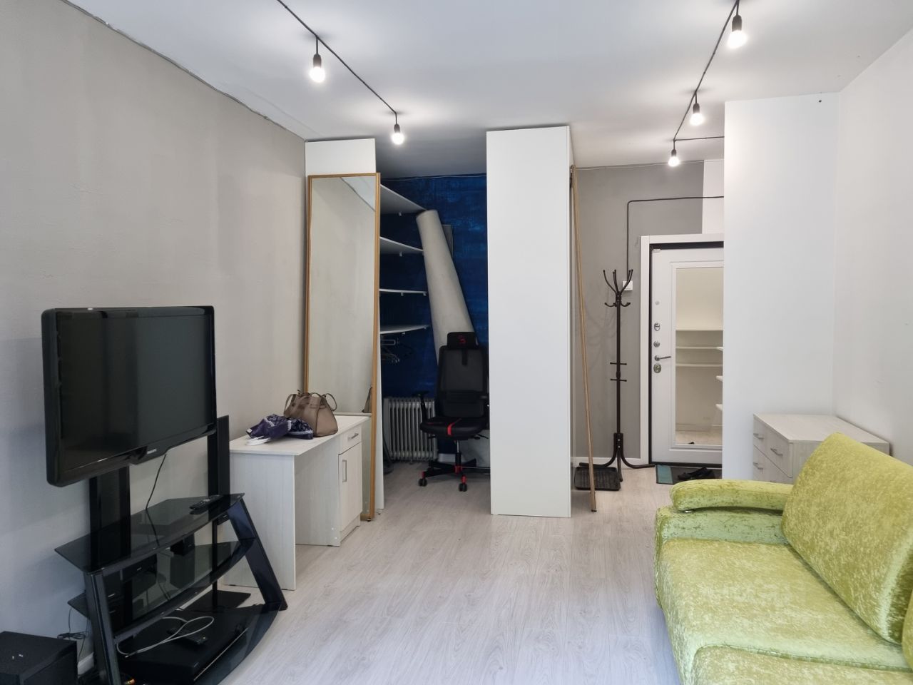 Сдается светлая, просторная студия на 13 этаже 20-этажного дома. Квартира со свежим ремонтом в серых тонах. Из мебели в квартире есть большой шкаф для хранения, большой комод, кухонный гарнитур со встроенной варочной панелью и встроенной посудомоечной машиной, в ближайшем будущем будет установлен духовой шкаф. Также есть отдельная зона приема пищи - обеденный стол и стулья. Спальное место временно отсутствует, но этот вопрос будет закрыт так же в ближайшее время. В ванной установлена новая стиральная машина. Возле дома расположен подземный паркинг, также имеется небольшая открытая парковка. Остановки общественного транспорта в шаговой доступности. В стоимость включены коммунальные платежи без учета счетчиков (гвс, ХвС, ээ) и интернета. Сдача на длительный срок. При оформлении аренды заключение договора обязательно.
