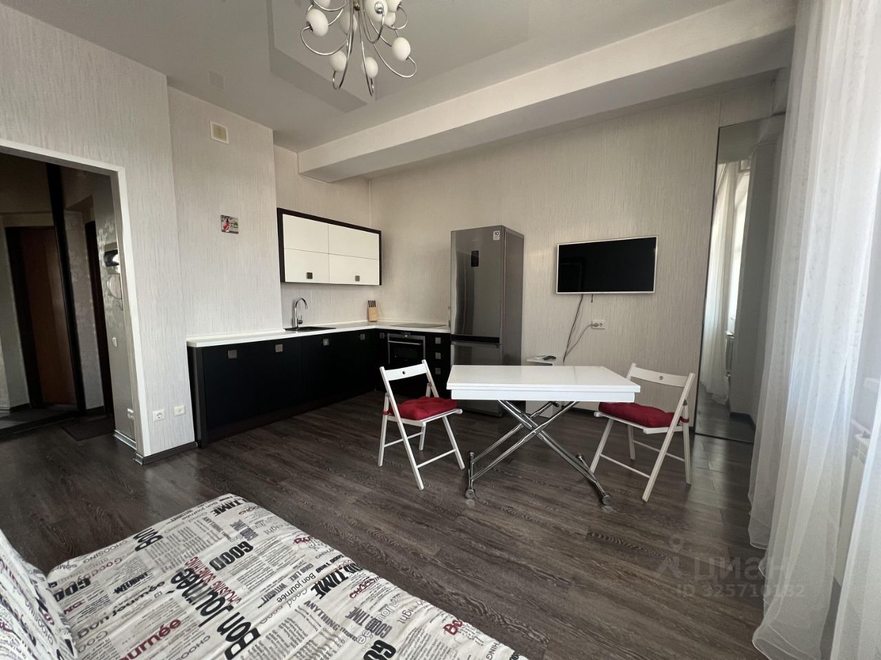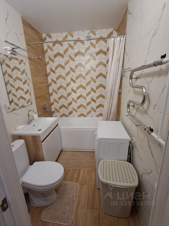 Сдается студия на длительный срок от собственника в ЖК Авиатор, Залог 25000 рублей. Коммунальные услуги по счетчикам оплачиваются арендатором. Квартира расположена в новом доме 2024 года постройки. В квартире выполнен свежий ремонт, еще никто не жил. Кухня оборудована всем необходимым для комфортного проживания: холодильник, посудомоечная машина, чайник, микроволновка, вытяжка, плита, духовка. Есть телевизор и двухспальный раздвижной диван. Во дворе находится хорошая детская площадка и парковка за шлагбаумом.