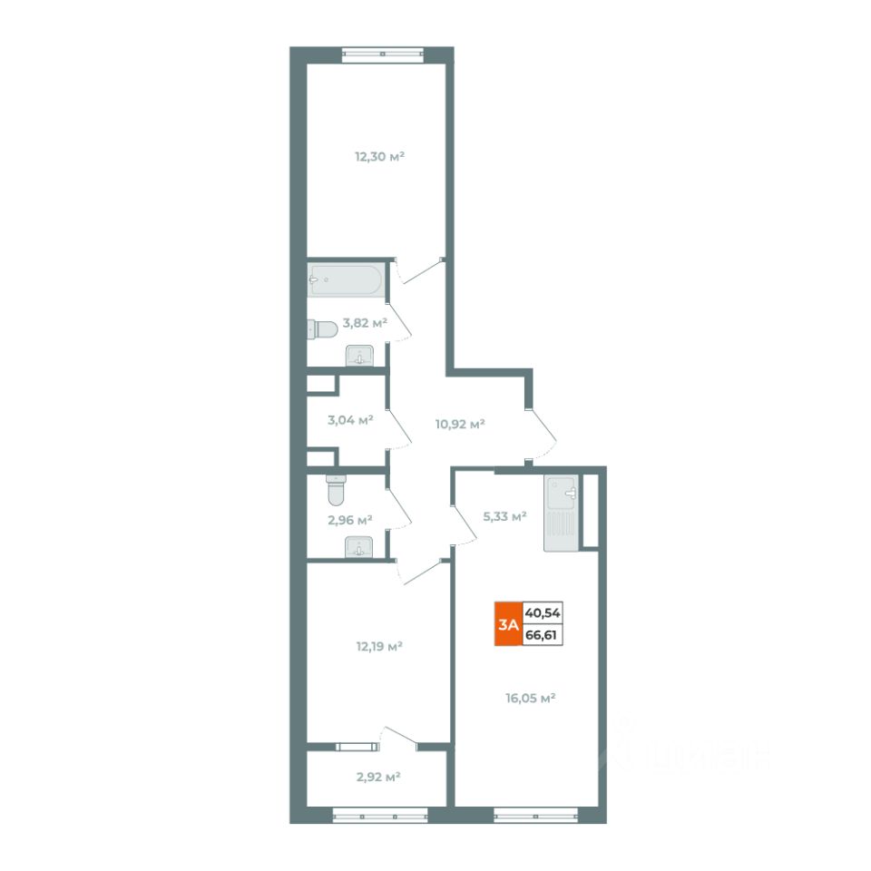 О КВАРТИРЕ Планировка на 2 стороны света. Такая планировка повышает комфорт, способствует хорошему климату внутри жилья и предлагает больше возможностей для светлой и уютной организации пространства. 2 изолированные комнаты 12,3м2 + 12,19м2 с выходом на балкон. Просторная кухня-гостиная 21,38м2 2 санузла В прихожей вместительная гардеробная комната