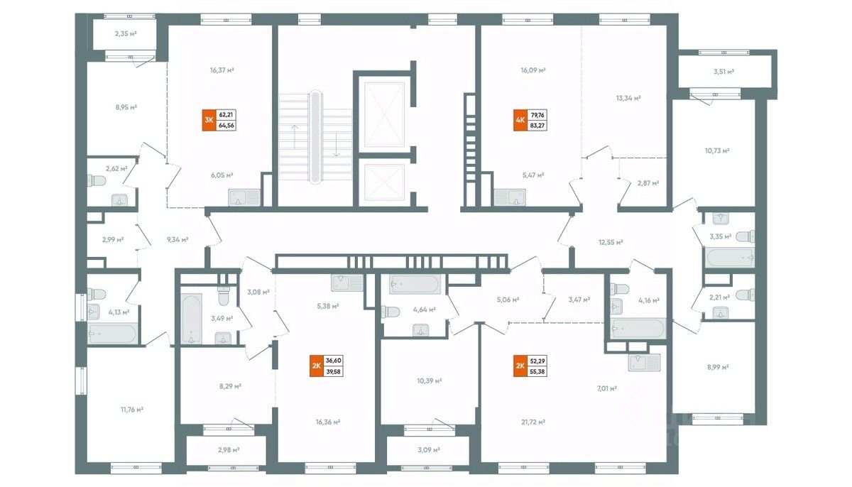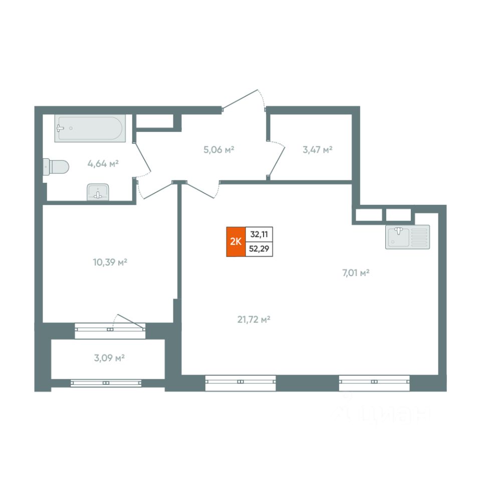 О КВАРТИРЕ Площадь 55,38м2 Эргономичная планировка. В квартире изолированная комната правильной формы с выходом на балкон. Большая кухня-гостиная 28,73м2 с возможностью выделения еще одной полноценной комнаты. В прихожей оборудована гардеробная площадью 3,47м2