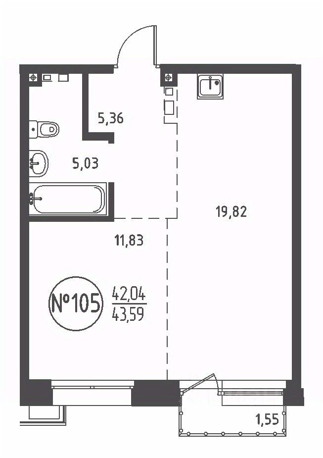 Общая площадь43,59 м2