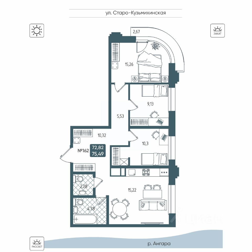 Общая площадь75,49 м2