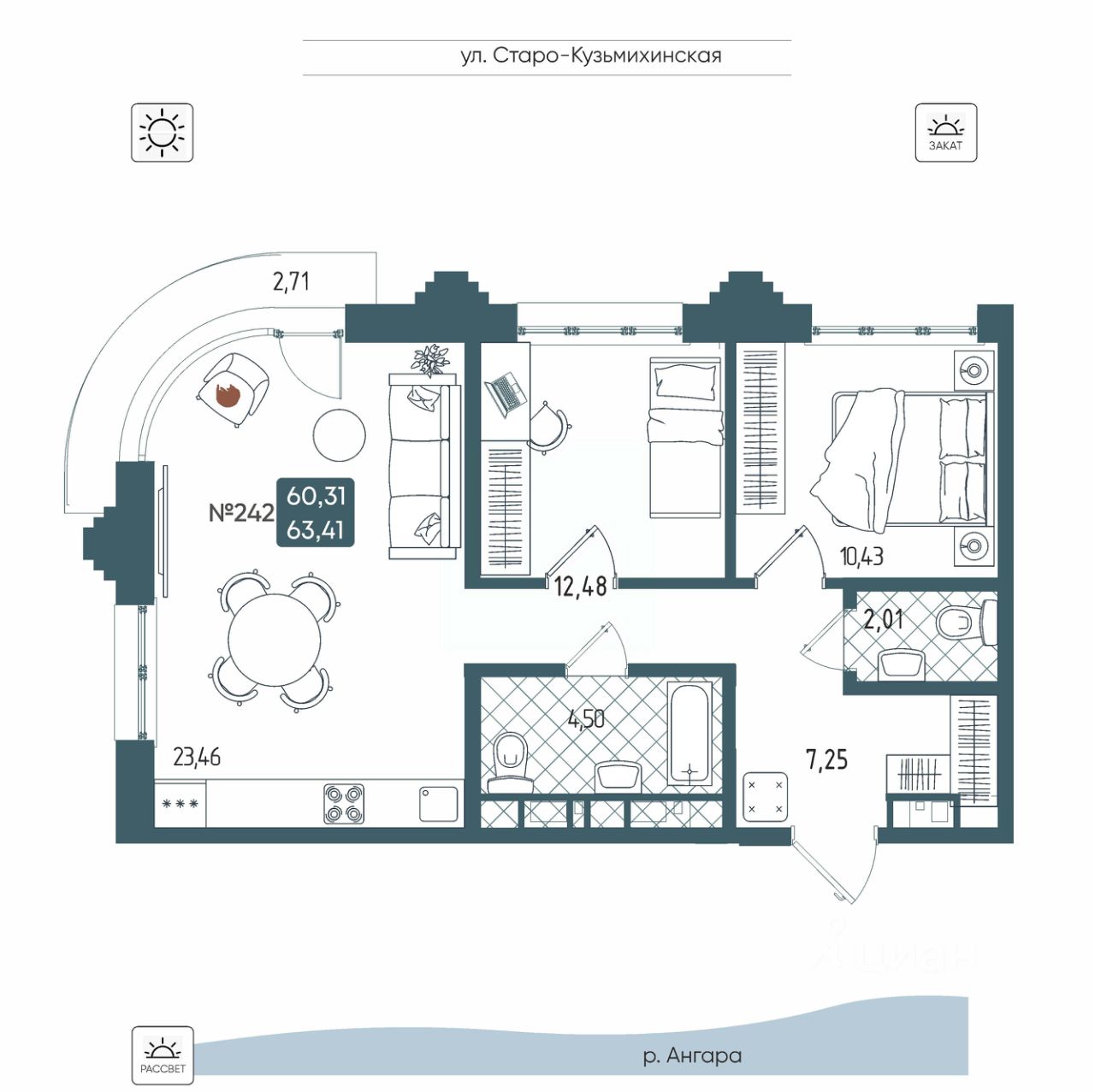 Дом бизнес-класса БРОДСКИЙ обладает завораживающими видами на реку и город, удобную локацию, сочетающую максимум приватности и одновременно превосходную транспортную доступность, выразительную архитектуру и продуманные до мелочей дизайнерские места общего доступа. Смотровая площадка на крыше только для резидентов дома ''БРОДСКИЙ'', продуманный двор с многоуровневым озеленением и уютными зонами отдыха и видовыми площадками с дзен-пространством. Разноформатность зон отдыха подходит для неспешных прогулок и дружеских разговоров в приватных зонах с видом на реку. Мы отделили детскую зону и вынесли за пределы двора шумные спортивные площадки, для того чтобы все способствовало максимально комфортному отдыху. Ощущение приватности и собственной исключительности на каждом шагу! Более 80% квартир дома БРОДСКИЙ могут похвастаться захватывающими видами на реку Ангару! Дом бизнес-класса БРОДСКИЙ это:
