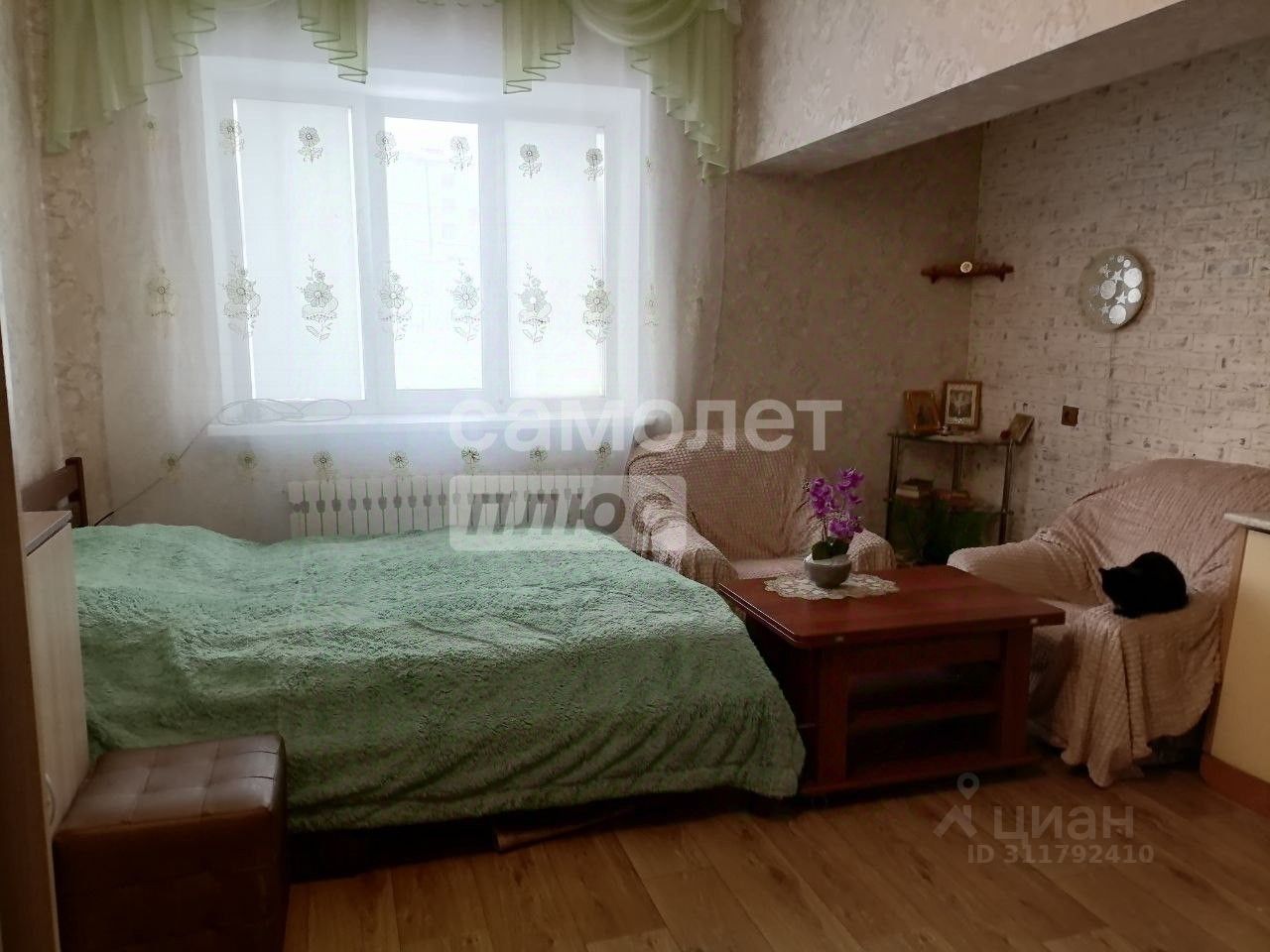 В квартире поклеены новые обои, на полу новый утепленный линолеум, установлены стеклопакеты, сан.узел совмещен.