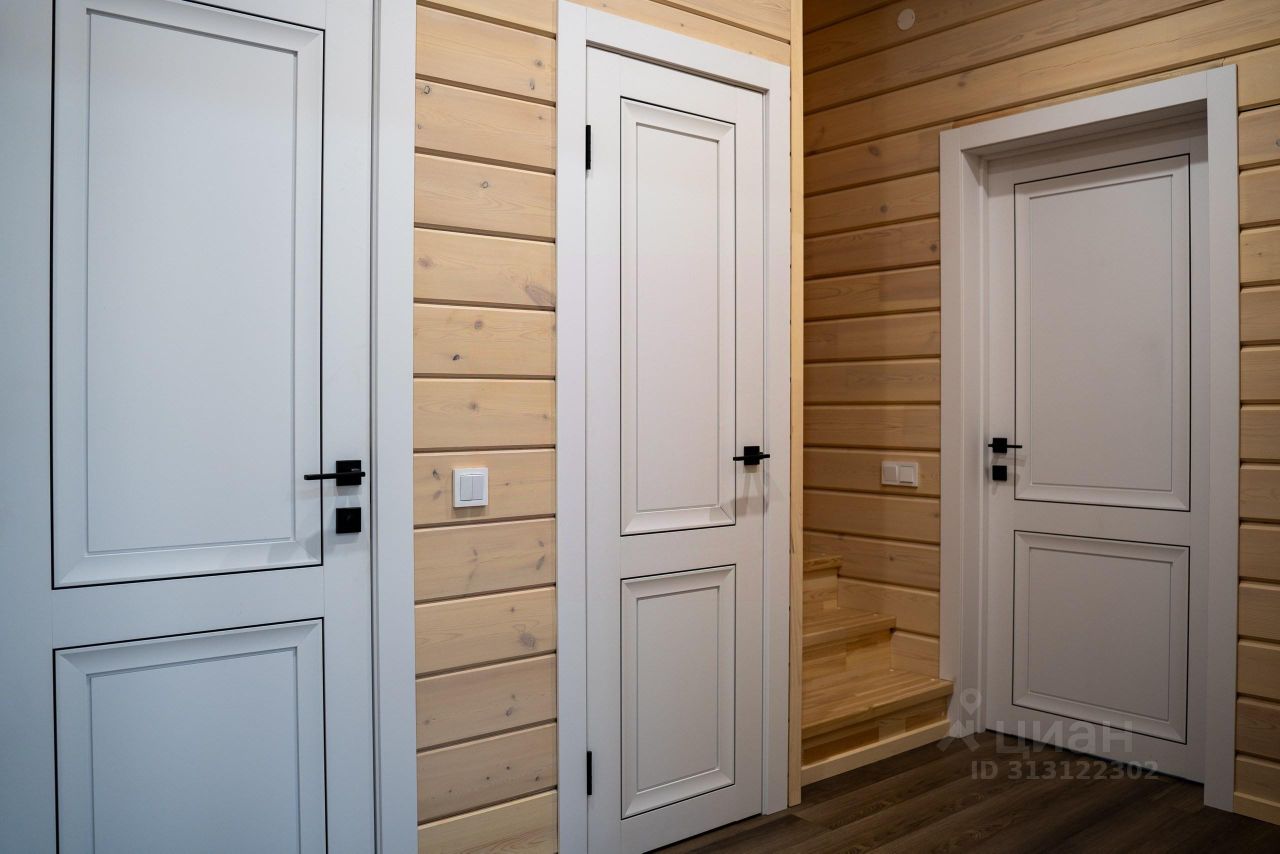 Внутреннее обустройство: -Полы: экологичная кварцвиниловая плитка, водяной теплый пол на первом этаже -Остекление: пятикамерные стеклопакеты -Стены: окрашены краской ОСМО, рекомендованной для детских игрушек -Лестница из столярной мастерской -Санузлы с кафельной плиткой