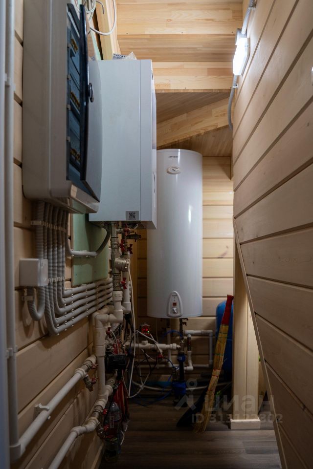 Баня: -Площадь: 7,4*3,4 м -Три комнаты: парная 2,7 м с электропечью Harvia, душевая и комната отдыха -Нагревательный бак на 100 литров -Электрические теплые полы