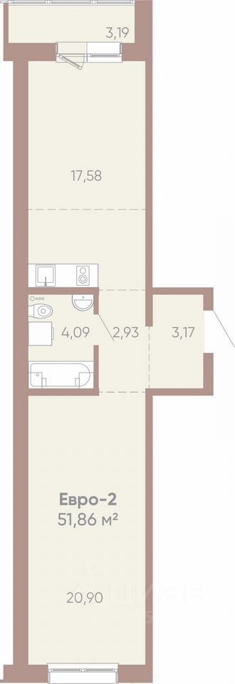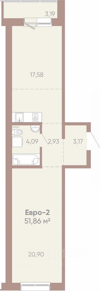 Продаётся просторная однокомнатная квартира площадью 51,9 квадратных метров в современном монолитном доме, расположенном в ЖК Новые горизонты на Советской.