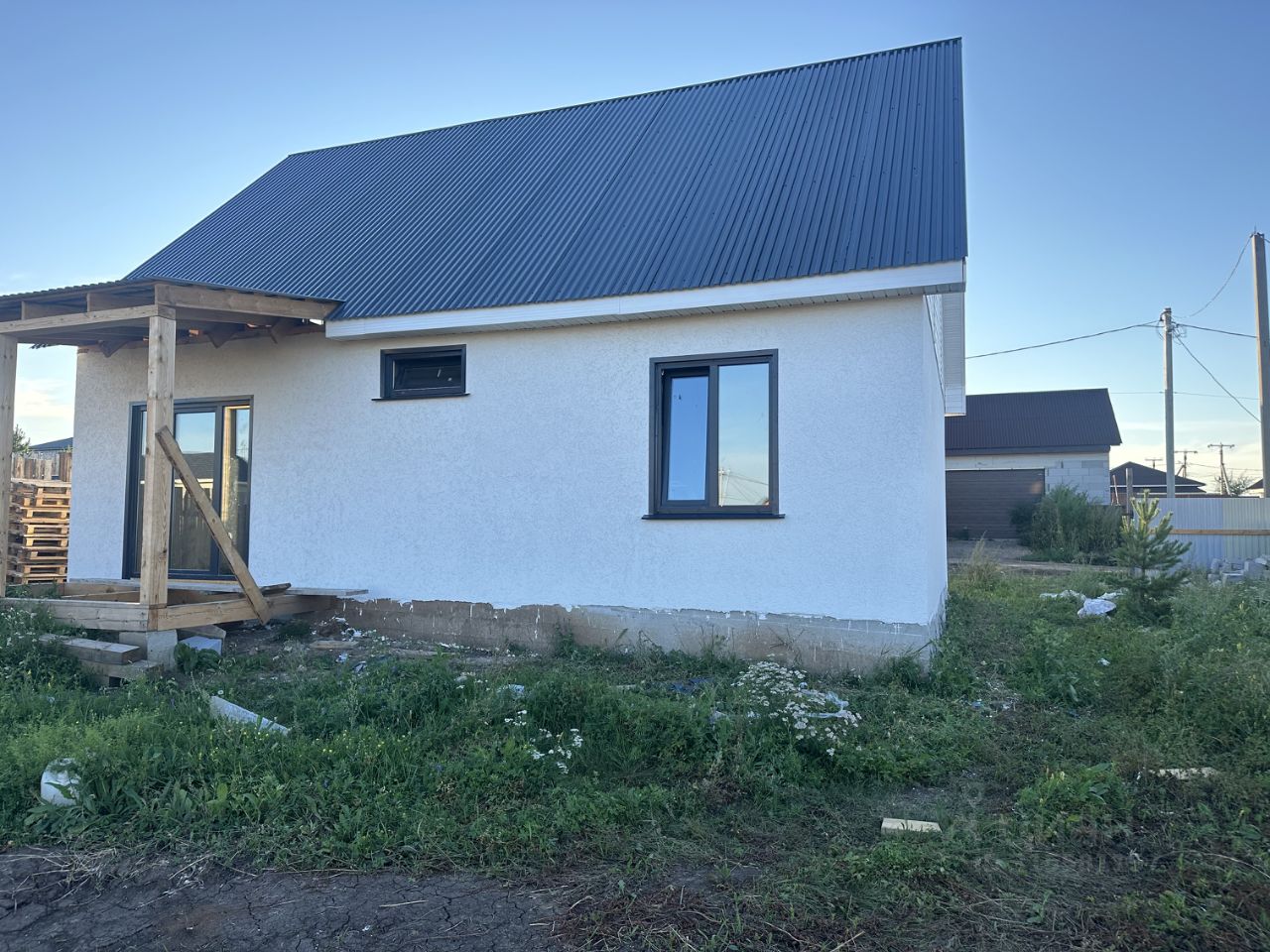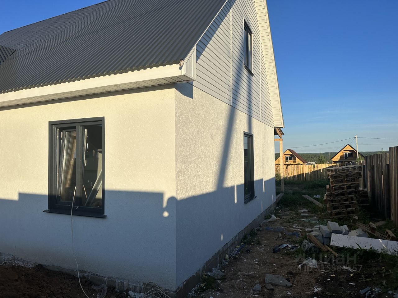 Дом будет отштукатурен под маяк, отшпаклеван, так же керамогранит 60/120, межкомнатные двери, натяжные потолки, санфаянс.