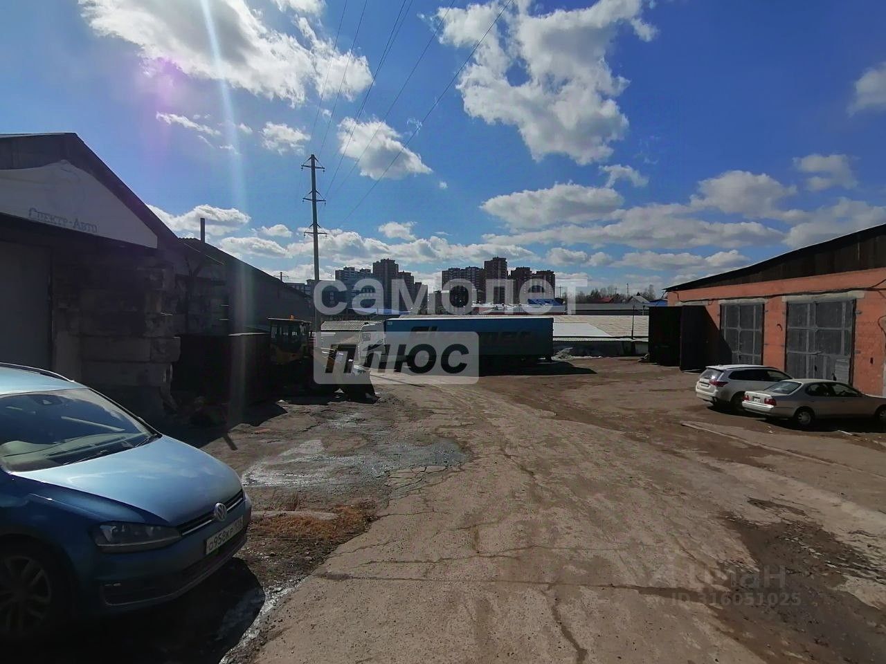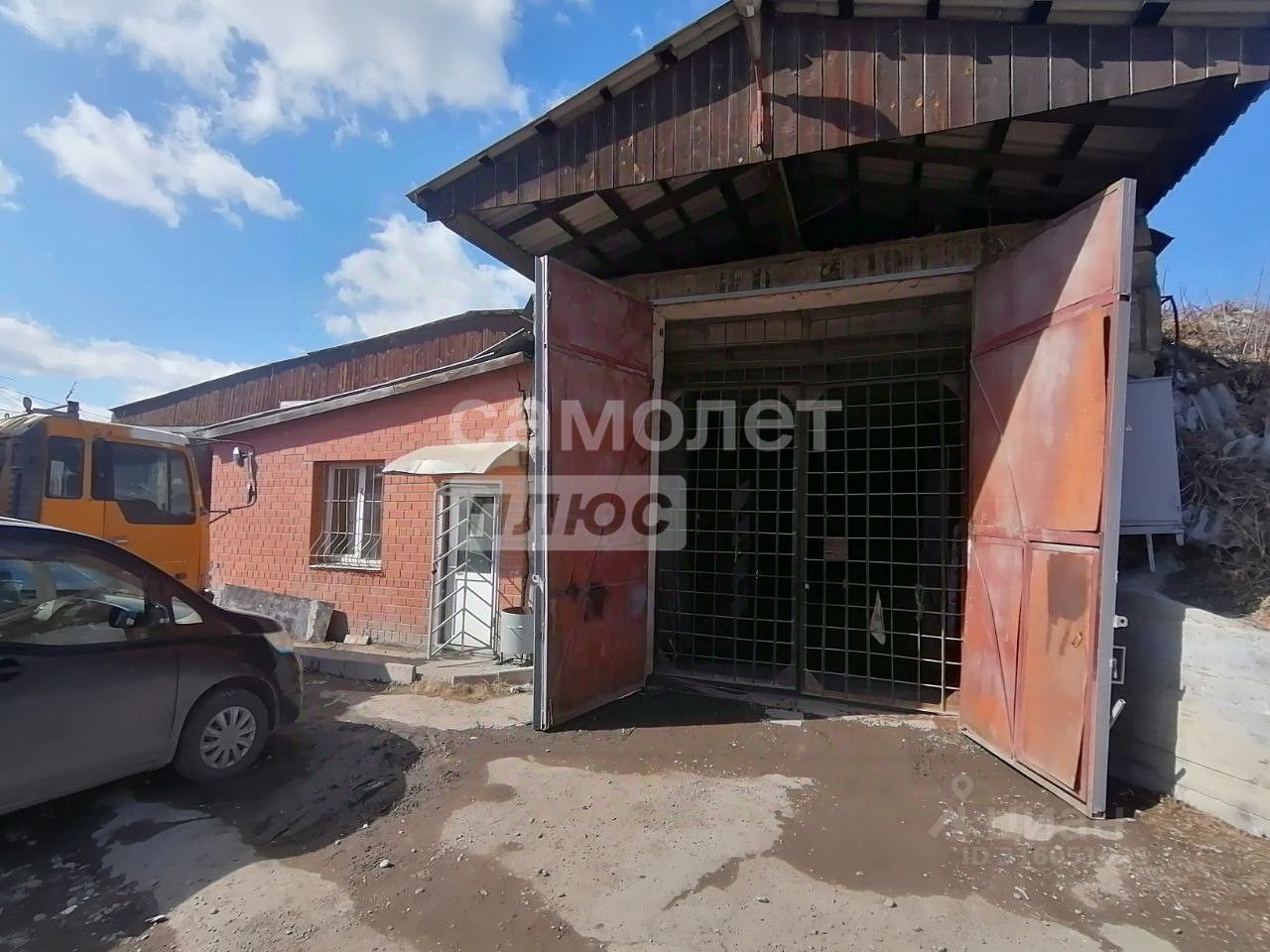Склад-гараж (две секции, 247 м² и 284 м²): Из блочных плит и кирпича, с двумя отдельными входами, предлагая гибкость в организации хранения и работы с транспортными средствами.