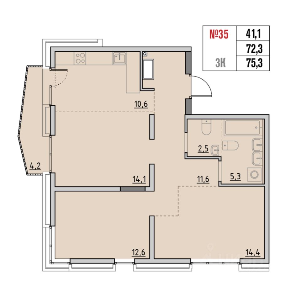 Общая площадь75,3 м2