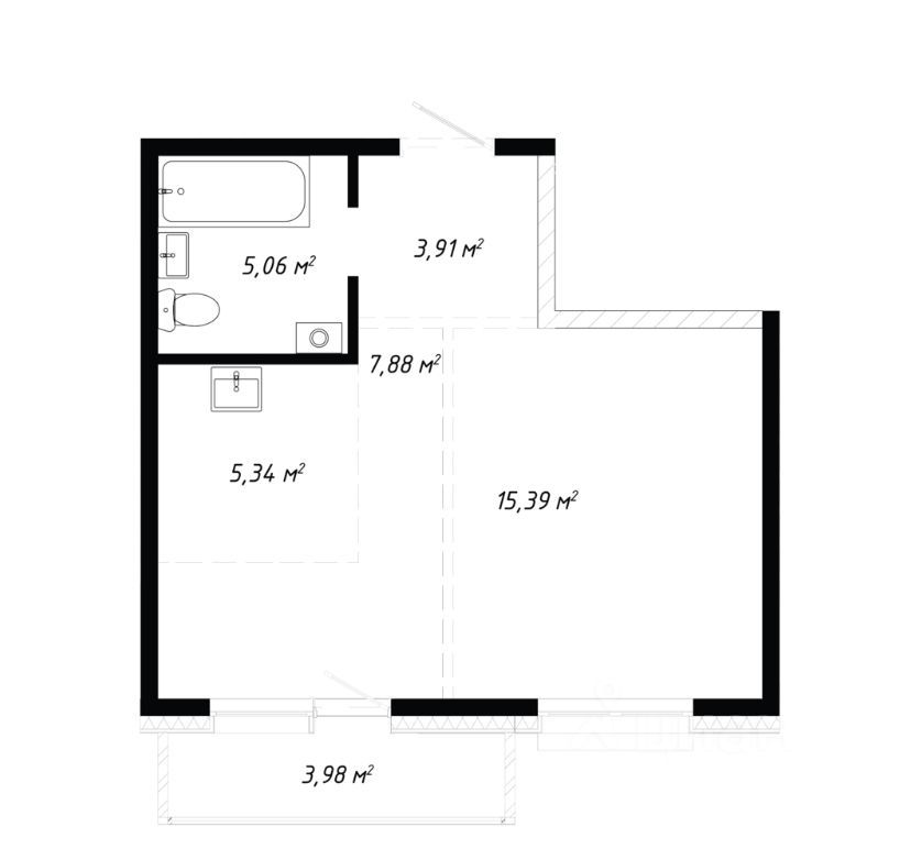 Общая площадь41,6 м2