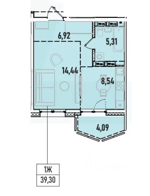 Общая площадь39,3 м2