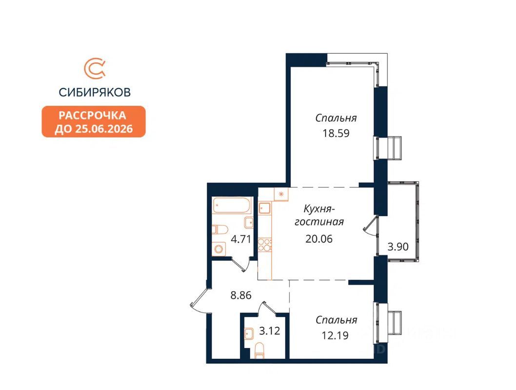 продам 2-к, Байкальская, 246б13 200 000 ₽