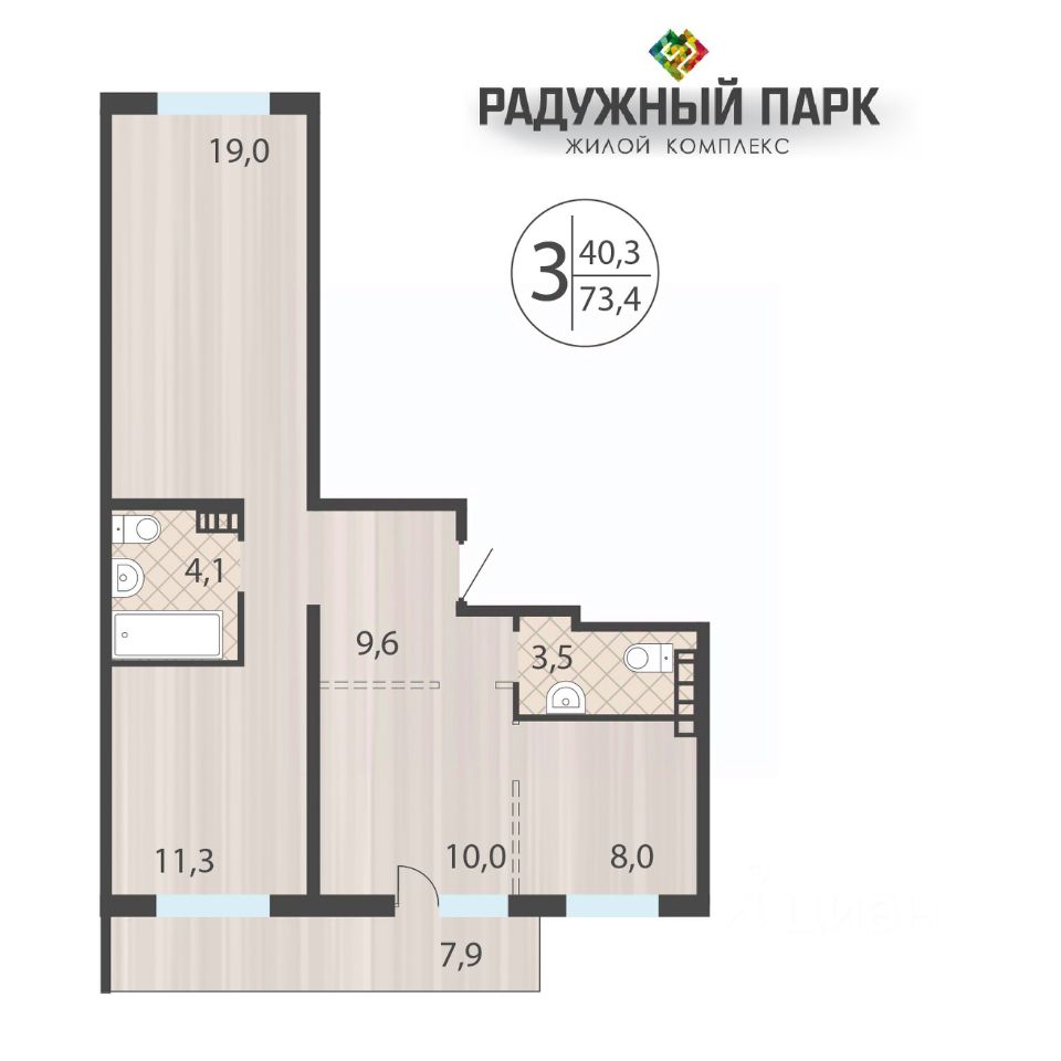 Общая площадь73,4 м2