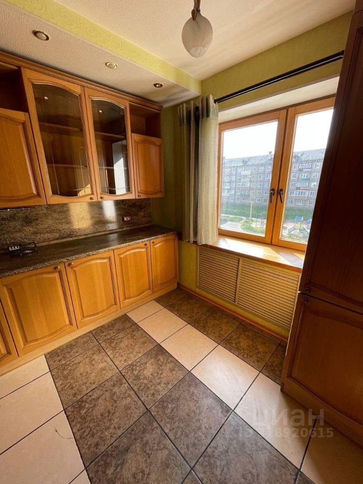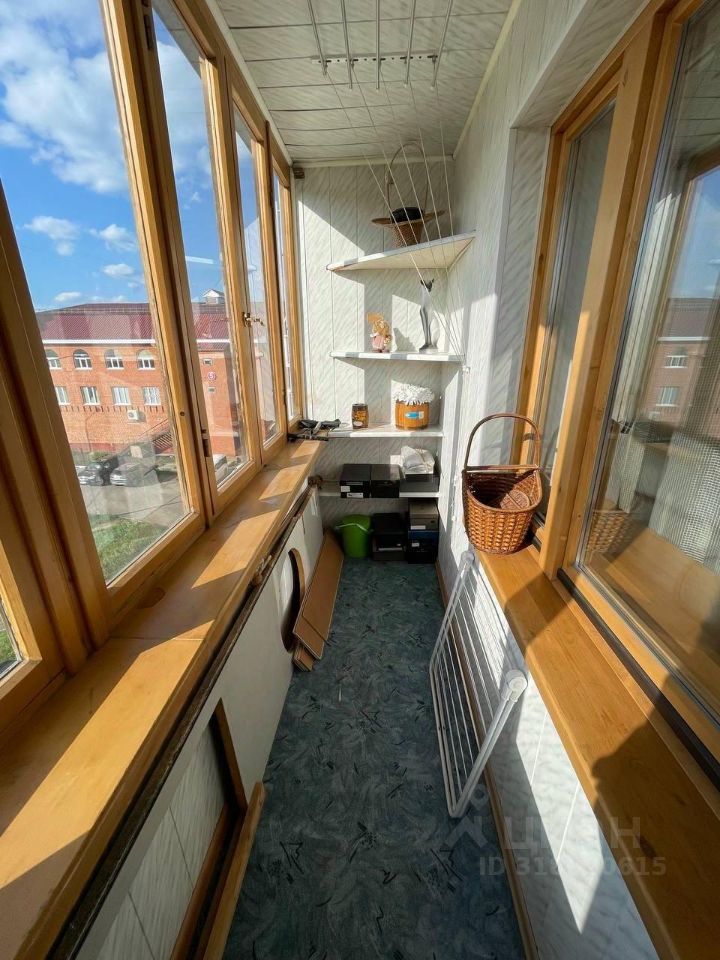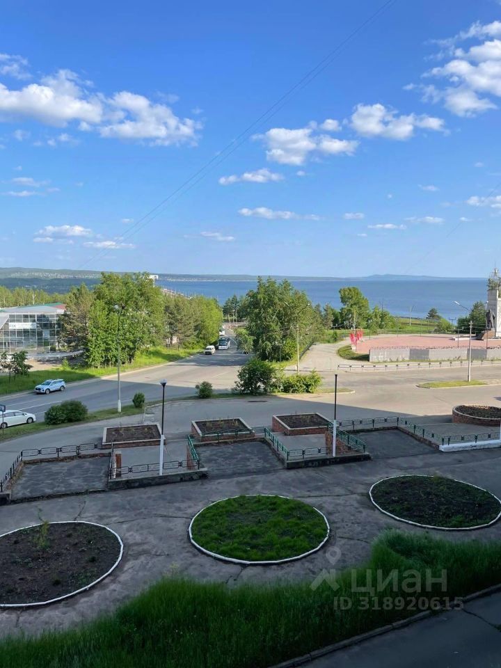 В санузле - кафель. Балкон остеклен и обшит изнутри. Окна трех комнат выходят во двор. Два - на солнечную сторону с видом на ГЭС, залив.