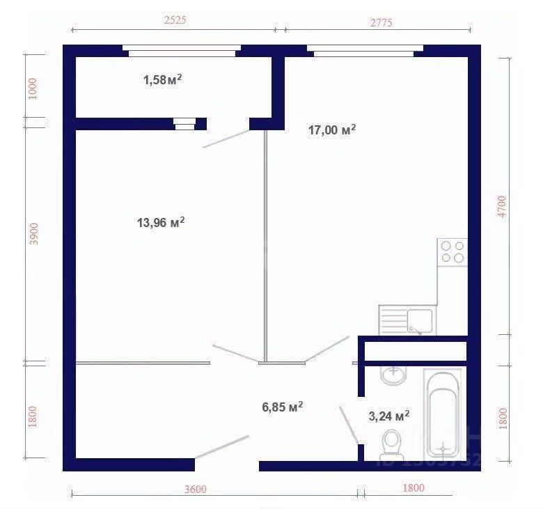 Площадь квартиры 35,30 м2, площадь лоджии 3,20 м2.