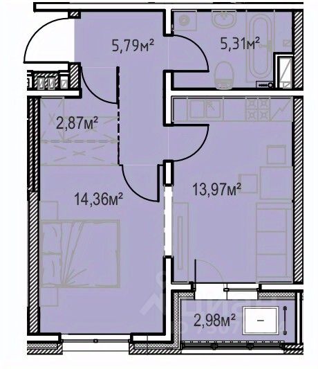 Жилая площадь14,4 м2