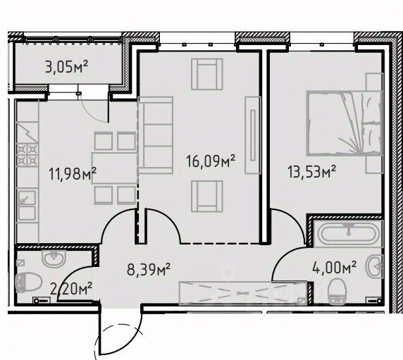 Общая площадь59,23 м2