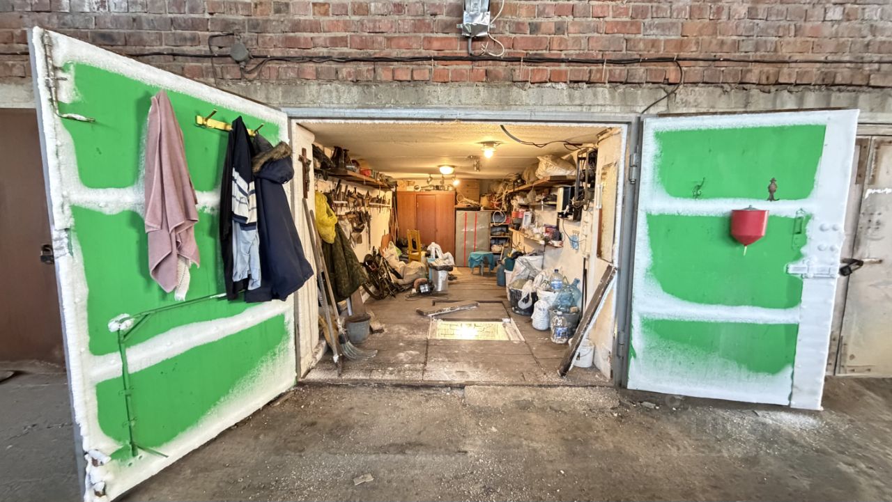 ОСНОВНЫЕ ХАРАКТЕРИСТИКИ: •Материал стен: кирпич •Перекрытия: железобетон •Крыша: не течёт, в отличном состоянии •Гараж сухой и тёплый, расположен на уровне земли •Свет подведён, установлен электросчётчик •Вентиляция •Распашные ворота, обшиты железом, закрываются легко