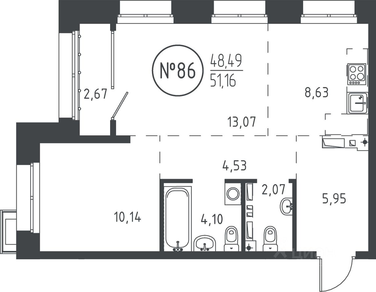 Общая площадь50,47 м2