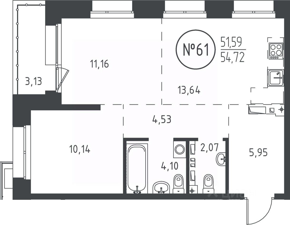 Общая площадь54,08 м2