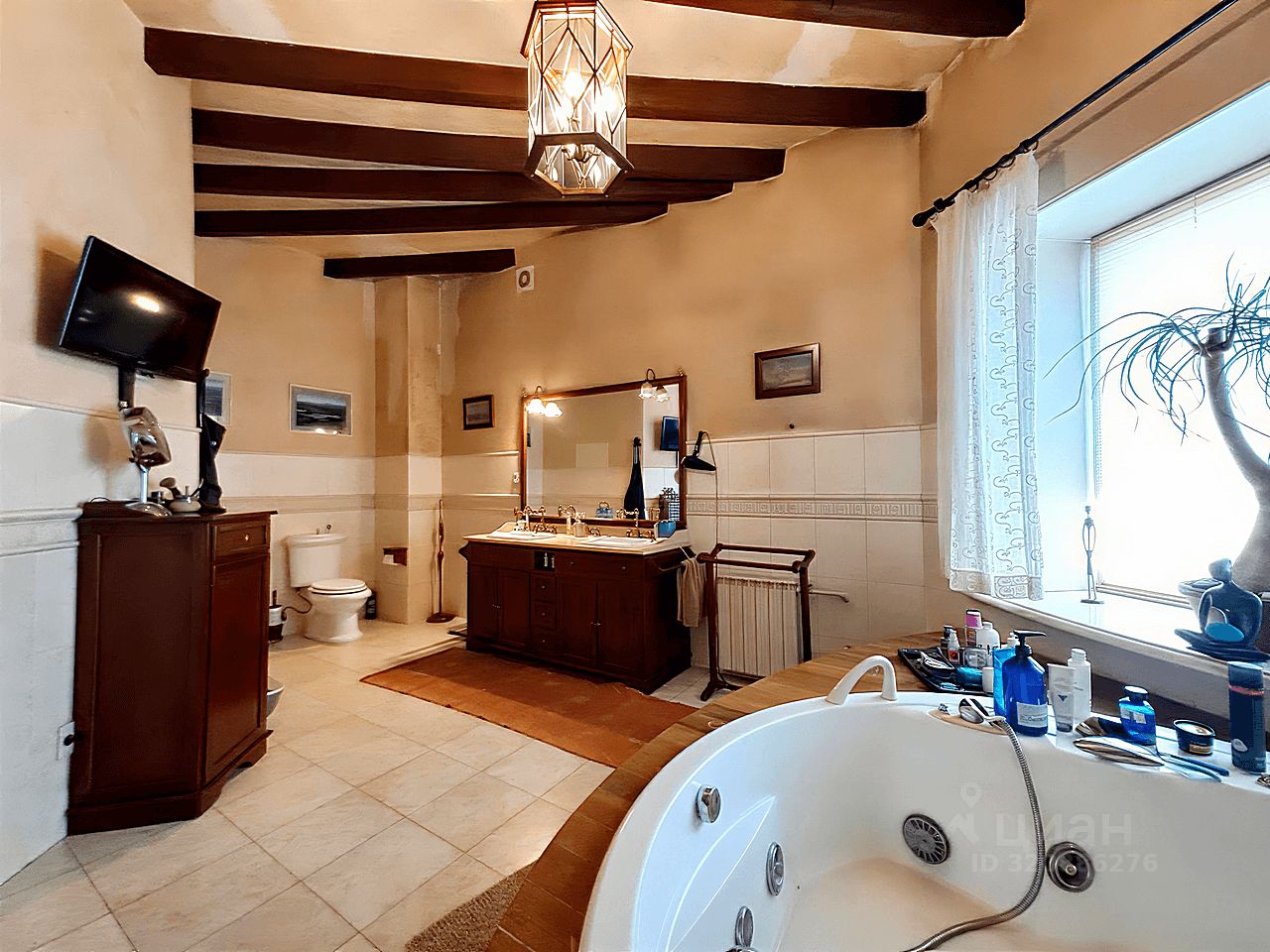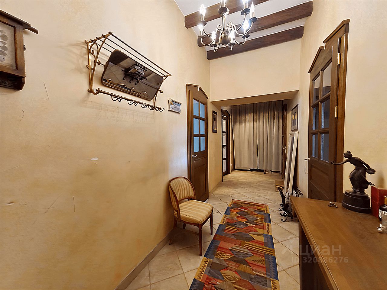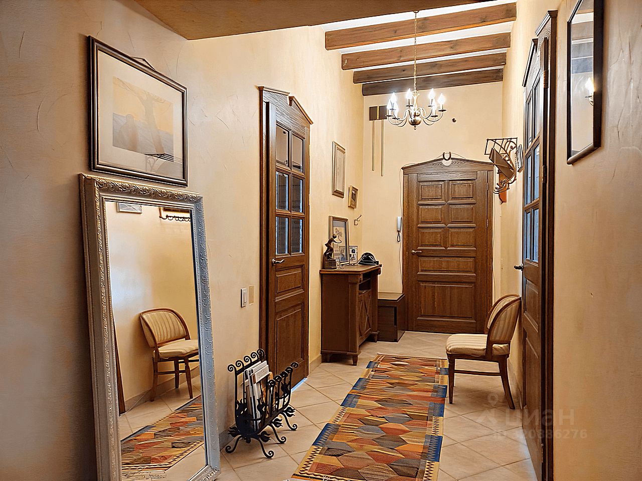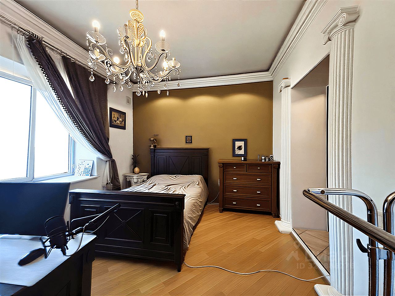 Современный кухонный гарнитур с электропечью. Шесть стульев и вместительный холодильник. Удобная кровать, угловой стол и комод. Телевизор для приятных вечеров. Особый шарм придаёт мебель ручной работы. Комфортный микроклимат обеспечат три кондиционера.