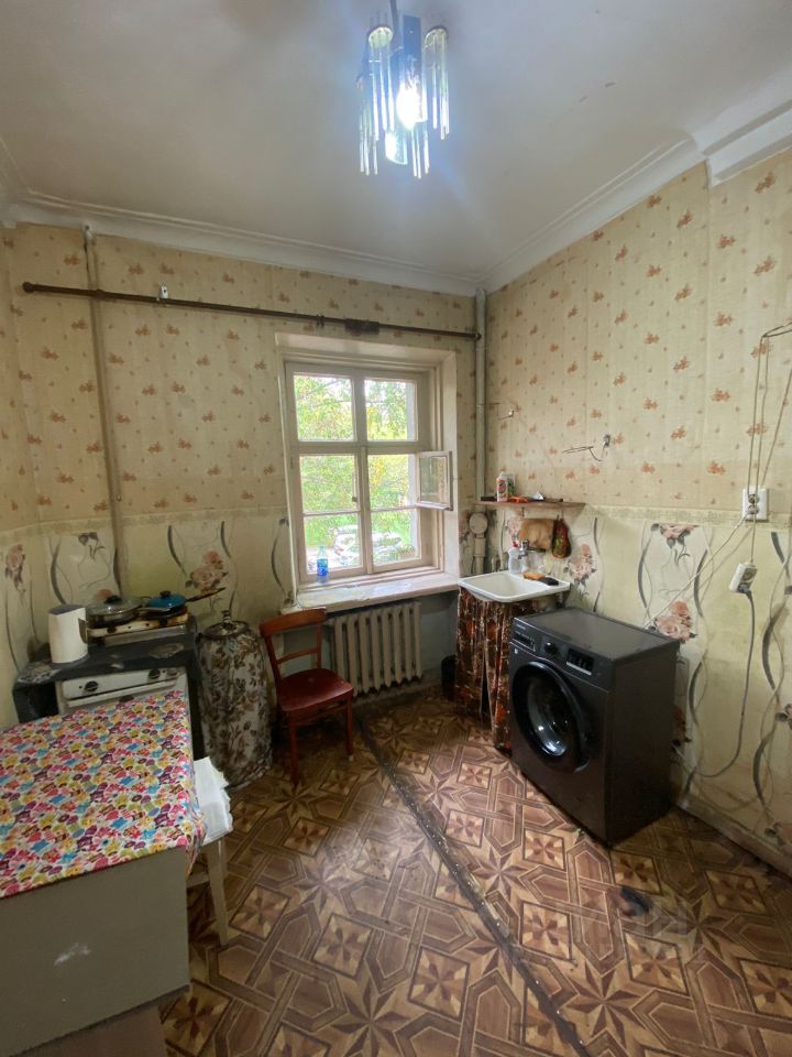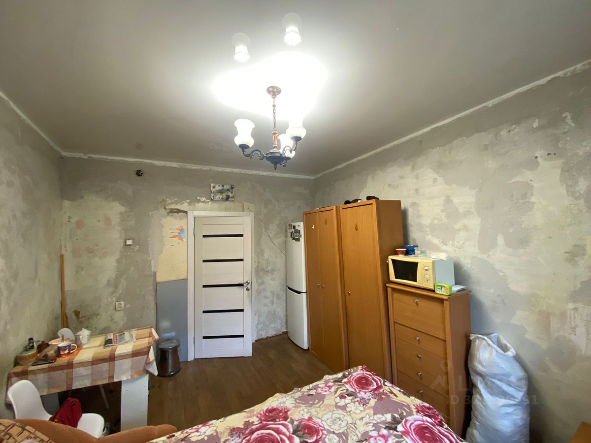 Комната чистая ухоженная, установлен стеклопакет, новая межкомнатная дверь, на полу линолеум, потолок натяжной, обои не успели наклеить. Сосед хорошие не пьющие.