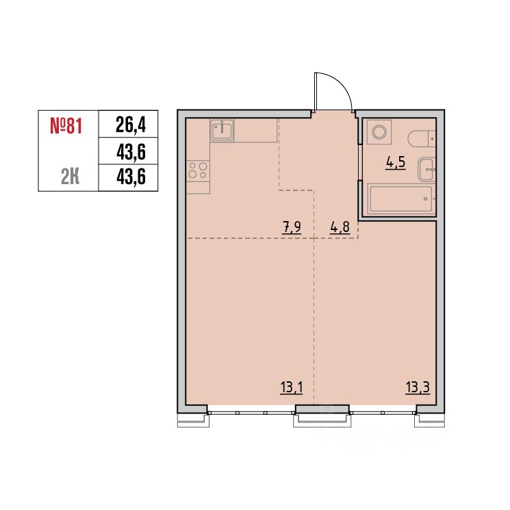 Общая площадь43,3 м2