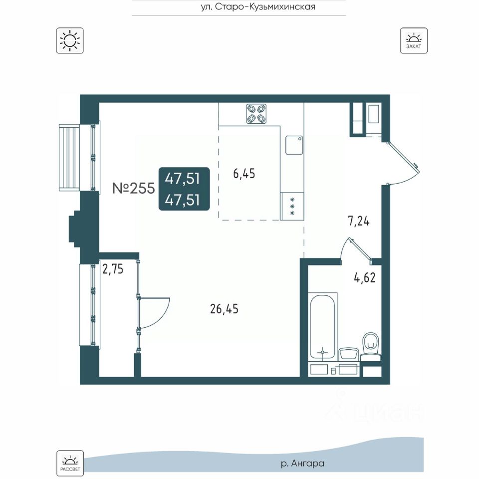Общая площадь47,51 м2