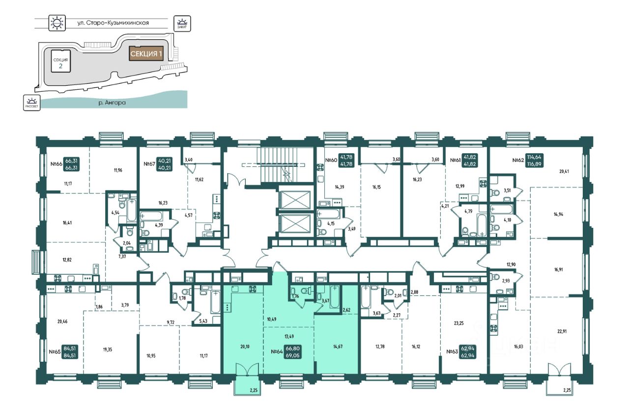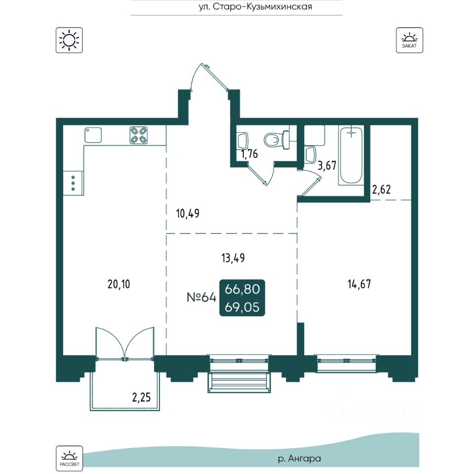 Общая площадь69,01 м2