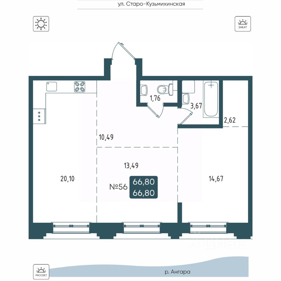 Общая площадь66,8 м2