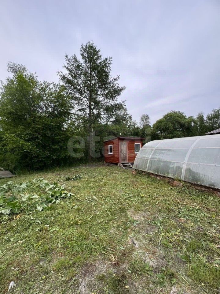 На участке расположен небольшой каркасный домик 3*3, прекрасно подойдет для проживания работников на период строительства домика или личного пользования.
