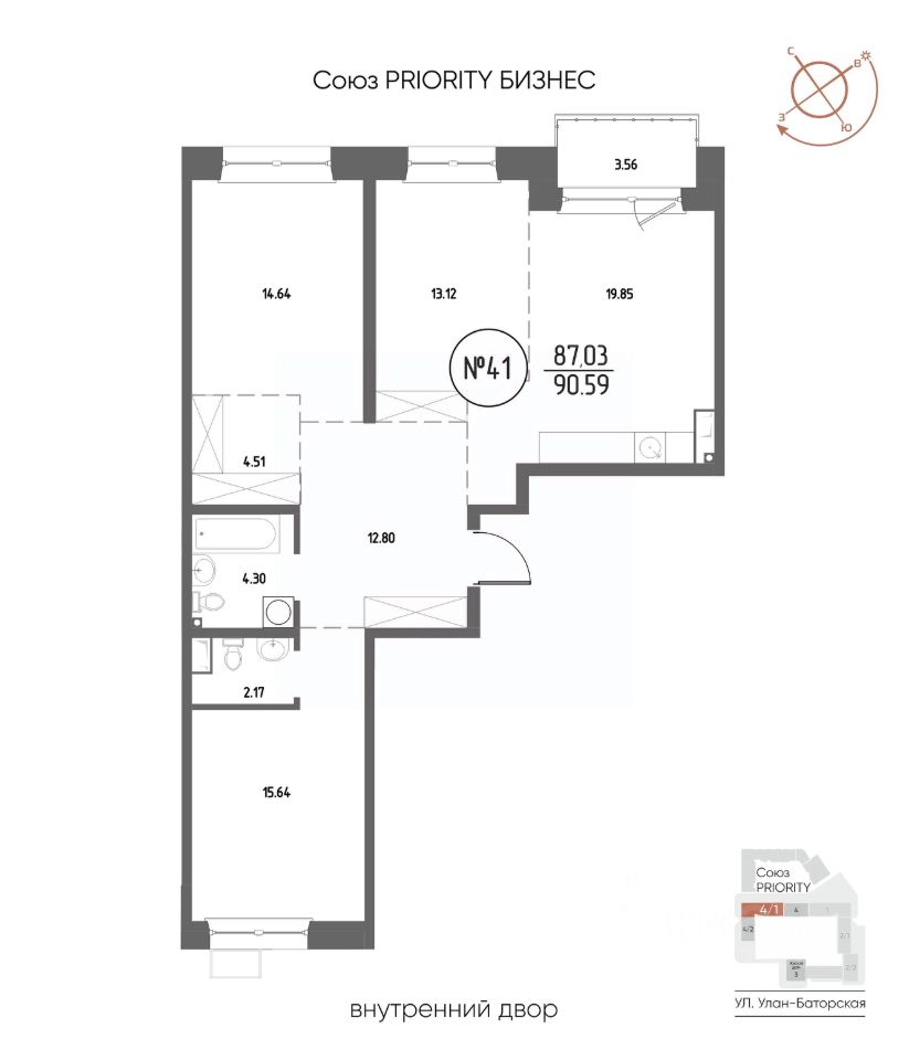 Продаётся 3-комнатная квартира в строящемся доме (Дом 4), срок сдачи: III-кв. 2029, общей площадью 90.59 кв.м., на 8 этаже. Мы начали с эталона - жилого комплекса Союз Priority, лучшего в России. А теперь представляем его логичное и яркое продолжение Союз Priority MAX.