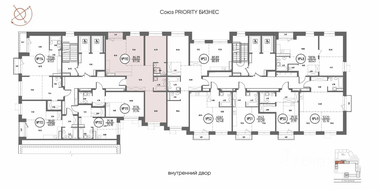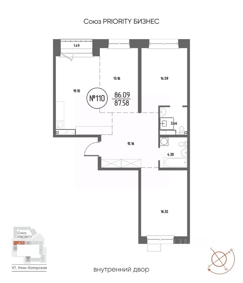 Продаётся 3-комнатная квартира в строящемся доме (Дом 4), срок сдачи: III-кв. 2029, общей площадью 87.58 кв.м., на 10 этаже. Мы начали с эталона - жилого комплекса Союз Priority, лучшего в России. А теперь представляем его логичное и яркое продолжение Союз Priority MAX.