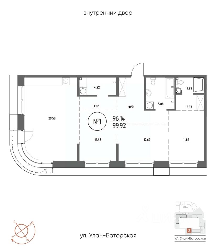 Продаётся 3-комнатная квартира в строящемся доме (Дом 3), срок сдачи: III-кв. 2029, общей площадью 99.92 кв.м., на 2 этаже. Мы начали с эталона - жилого комплекса Союз Priority, лучшего в России. А теперь представляем его логичное и яркое продолжение Союз Priority MAX.