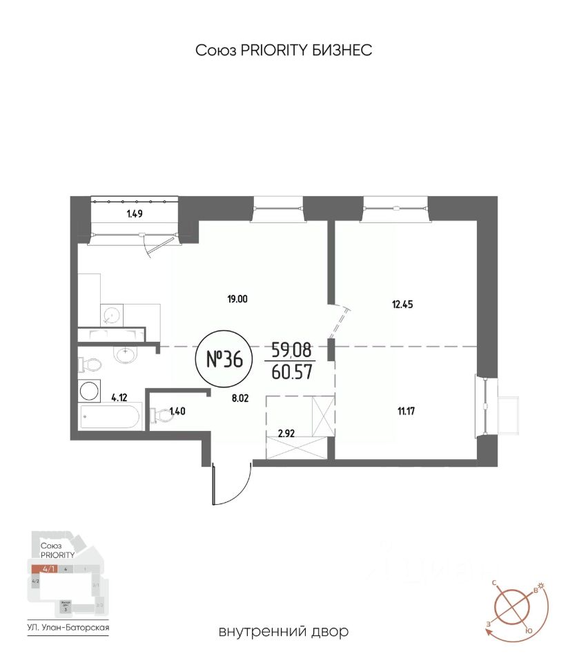 Продаётся 2-комнатная квартира в строящемся доме (Дом 4), срок сдачи: III-кв. 2029, общей площадью 60.57 кв.м., на 8 этаже. Мы начали с эталона - жилого комплекса Союз Priority, лучшего в России. А теперь представляем его логичное и яркое продолжение Союз Priority MAX.