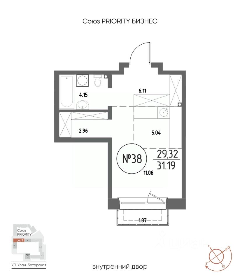 Продаётся студия в строящемся доме (Дом 4), срок сдачи: III-кв. 2029, общей площадью 31.19 кв.м., на 8 этаже. Мы начали с эталона - жилого комплекса Союз Priority, лучшего в России. А теперь представляем его логичное и яркое продолжение Союз Priority MAX.