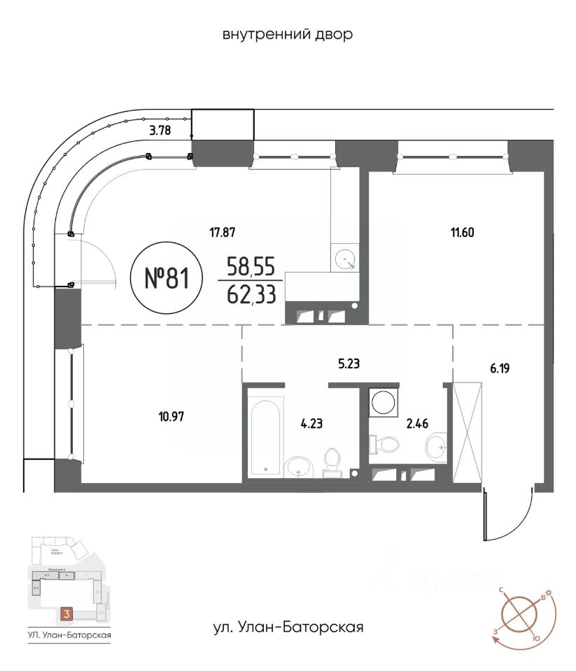 Продаётся 2-комнатная квартира в строящемся доме (Дом 3), срок сдачи: III-кв. 2029, общей площадью 62.33 кв.м., на 13 этаже. Мы начали с эталона - жилого комплекса Союз Priority, лучшего в России. А теперь представляем его логичное и яркое продолжение Союз Priority MAX.