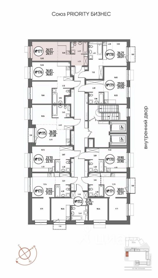 Продаётся студия в строящемся доме (Дом 4), срок сдачи: III-кв. 2029, общей площадью 26.57 кв.м., на 6 этаже. Мы начали с эталона - жилого комплекса Союз Priority, лучшего в России. А теперь представляем его логичное и яркое продолжение Союз Priority MAX.