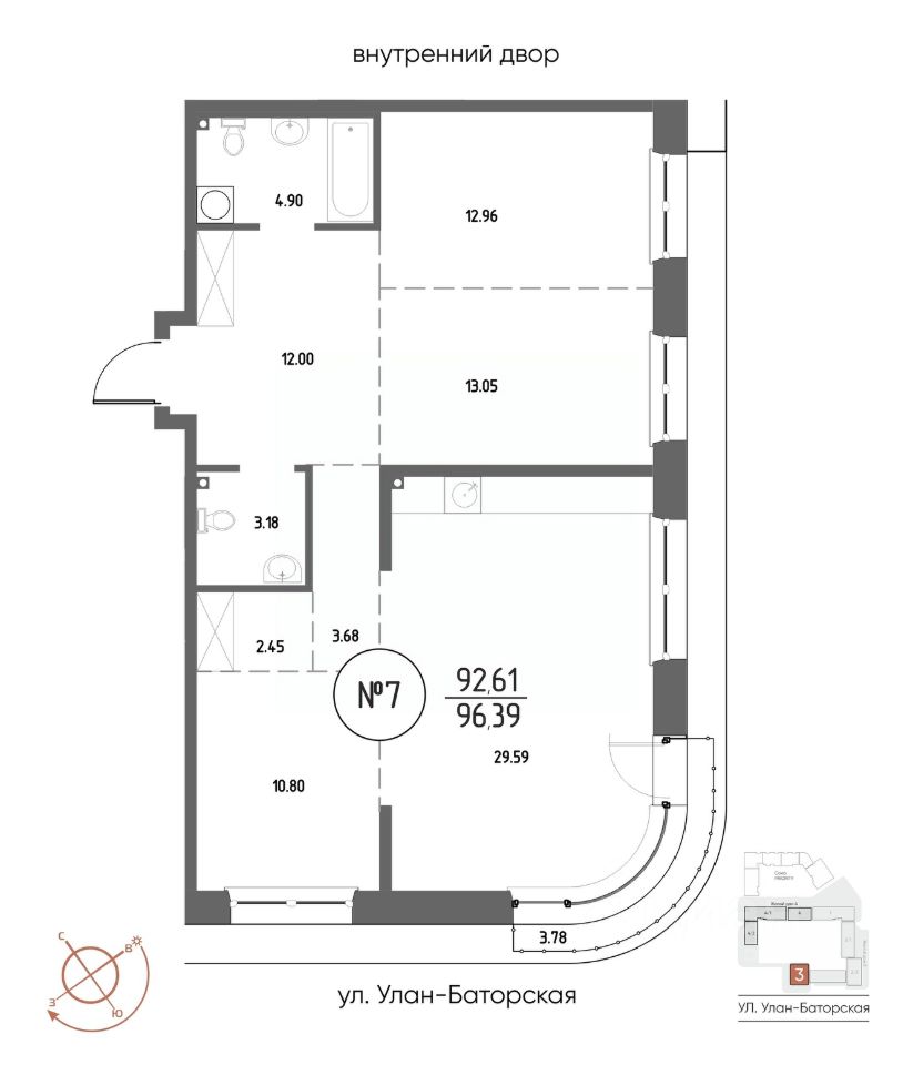 Продаётся 3-комнатная квартира в строящемся доме (Дом 3), срок сдачи: III-кв. 2029, общей площадью 96.39 кв.м., на 2 этаже. Мы начали с эталона - жилого комплекса Союз Priority, лучшего в России. А теперь представляем его логичное и яркое продолжение Союз Priority MAX.